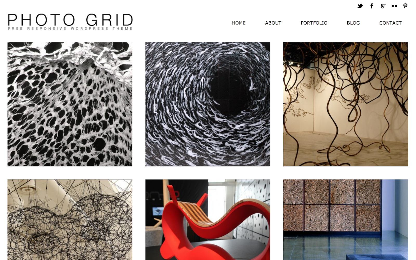 Minimalistyczny szablon, który po prostu jest stworzony do prezentacji portfolio. Na stronie głównej znajdują się kwadratowe, niewielkie miniatury. Po ich kliknięciu otwiera się strona ze sliderem oraz wybranymi innymi pracami.