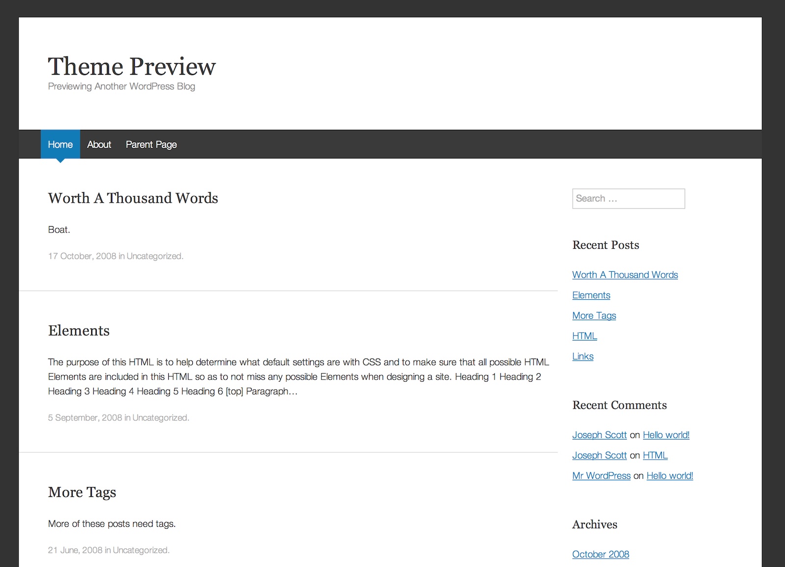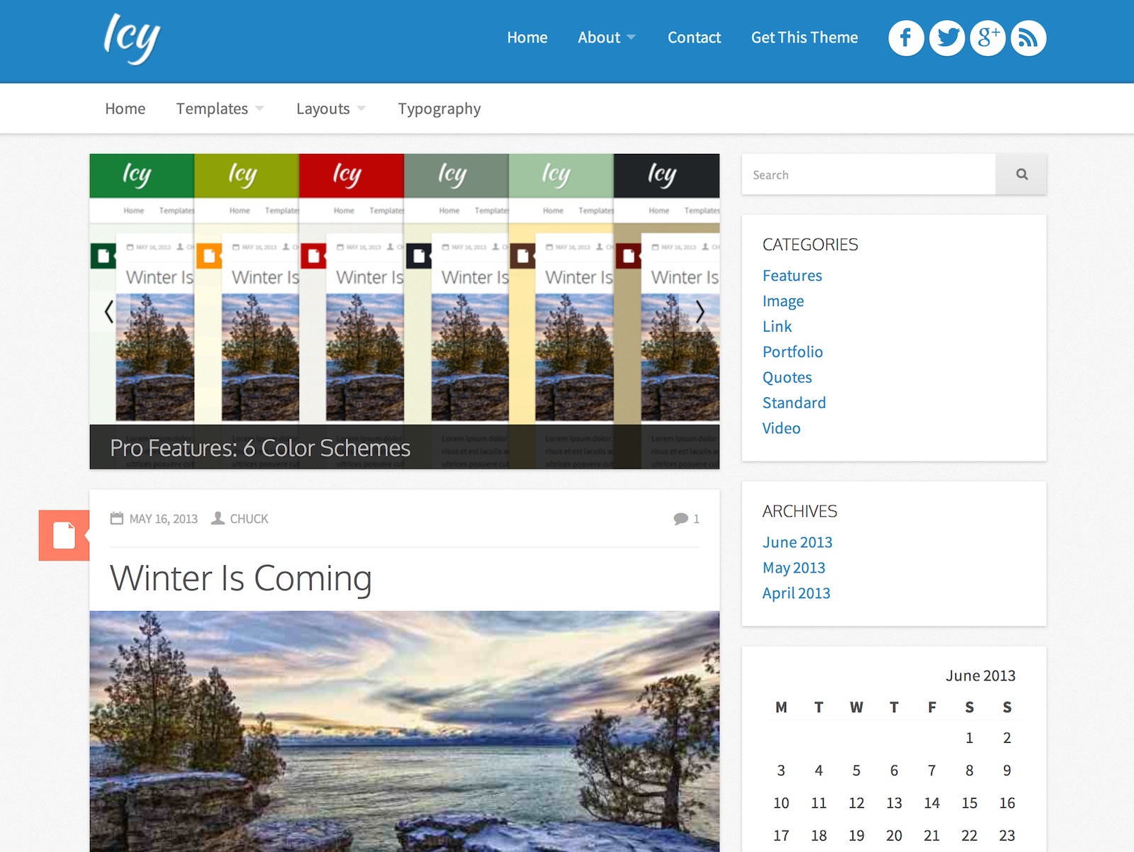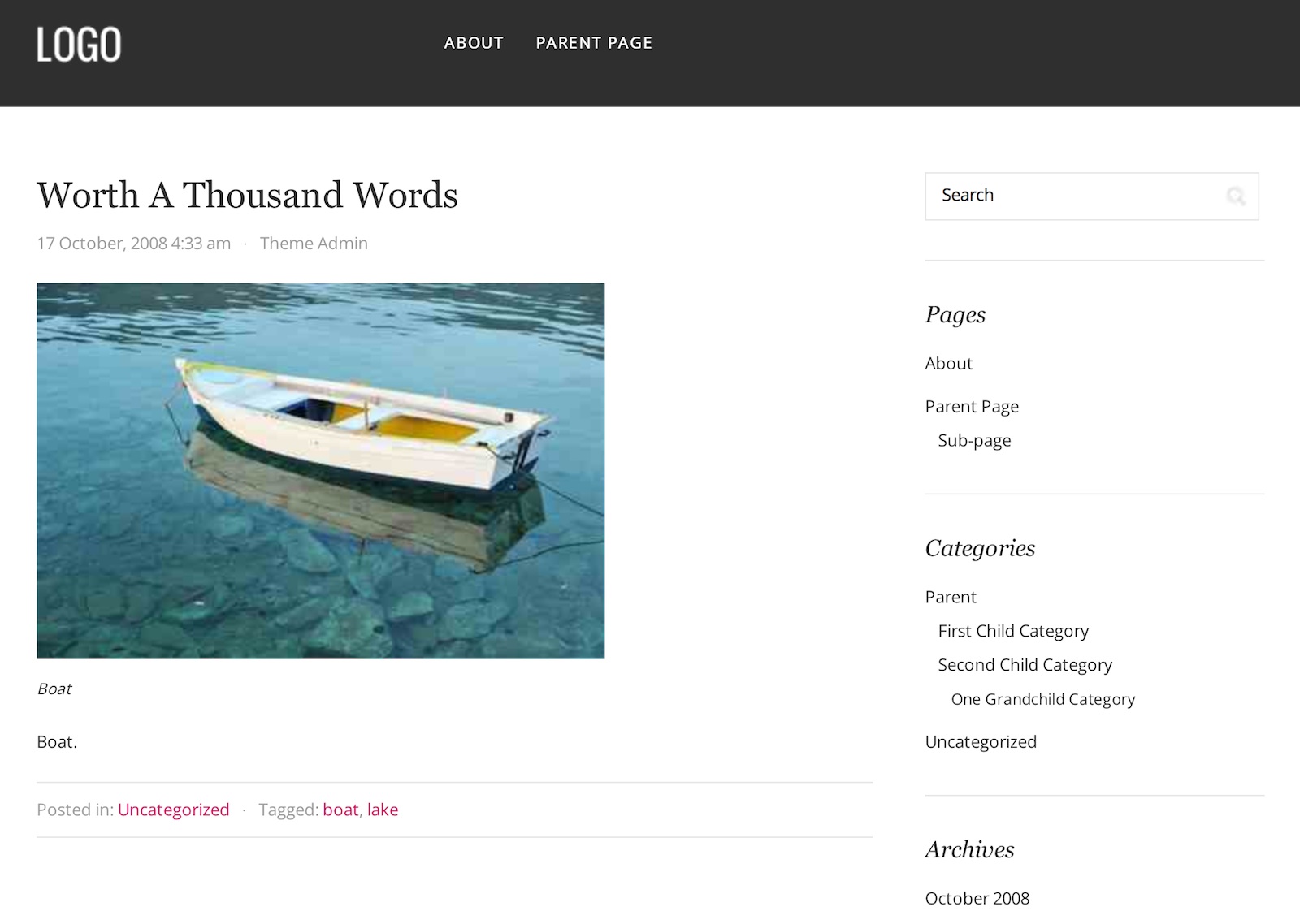 Zrzut ekranu dema z oficjalnego repozytorium nie pokazuje tego motywu w odpowiednim świetle. To dość estetyczny szablon blogowy, posiadający wszystko, co tego typu motyw posiadać powinien (poza responsywnością).