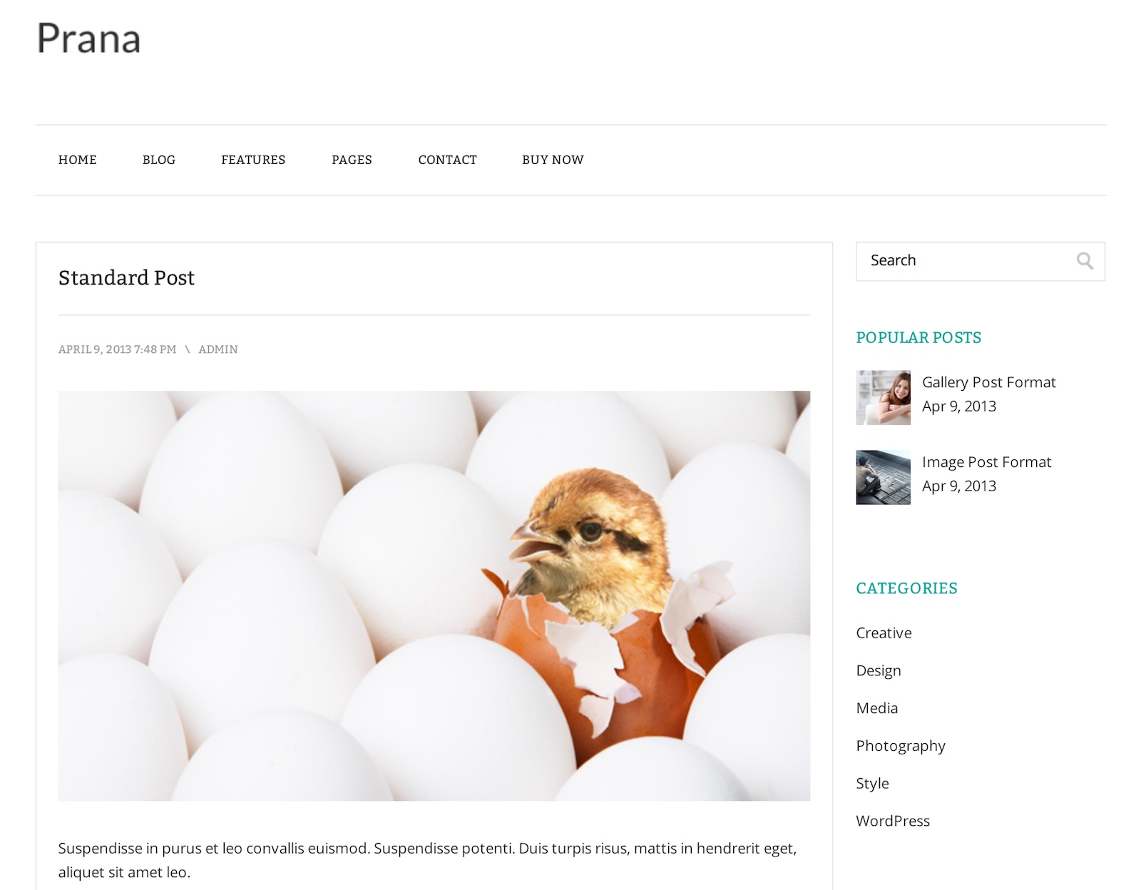 Bardzo ładny minimalistyczny szablon blogowy z estetyczną typografią. Ciekawostką jest umieszczony po prawej stronie panel boczny (sidebar), otwierany po kliknięciu znajdującej się w prawym górnym rogu ikonki plusa. Mój faworyt w tym zestawieniu.