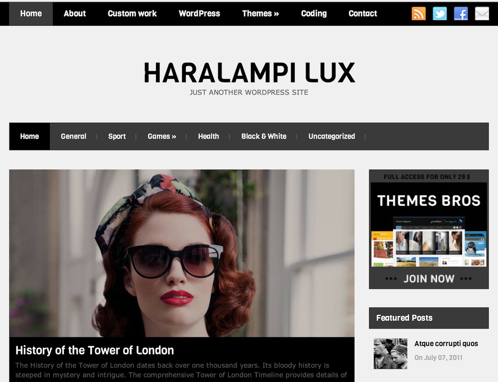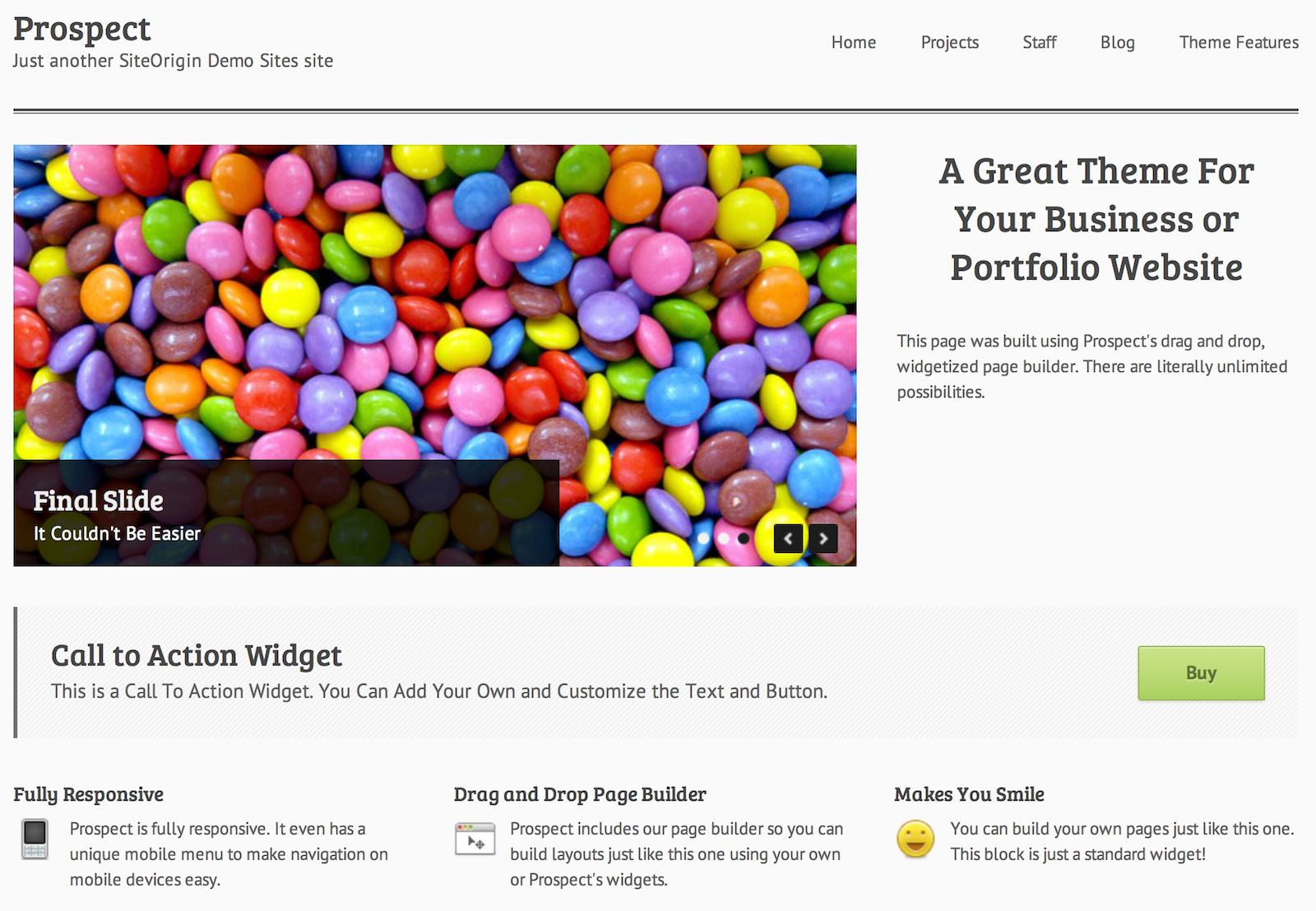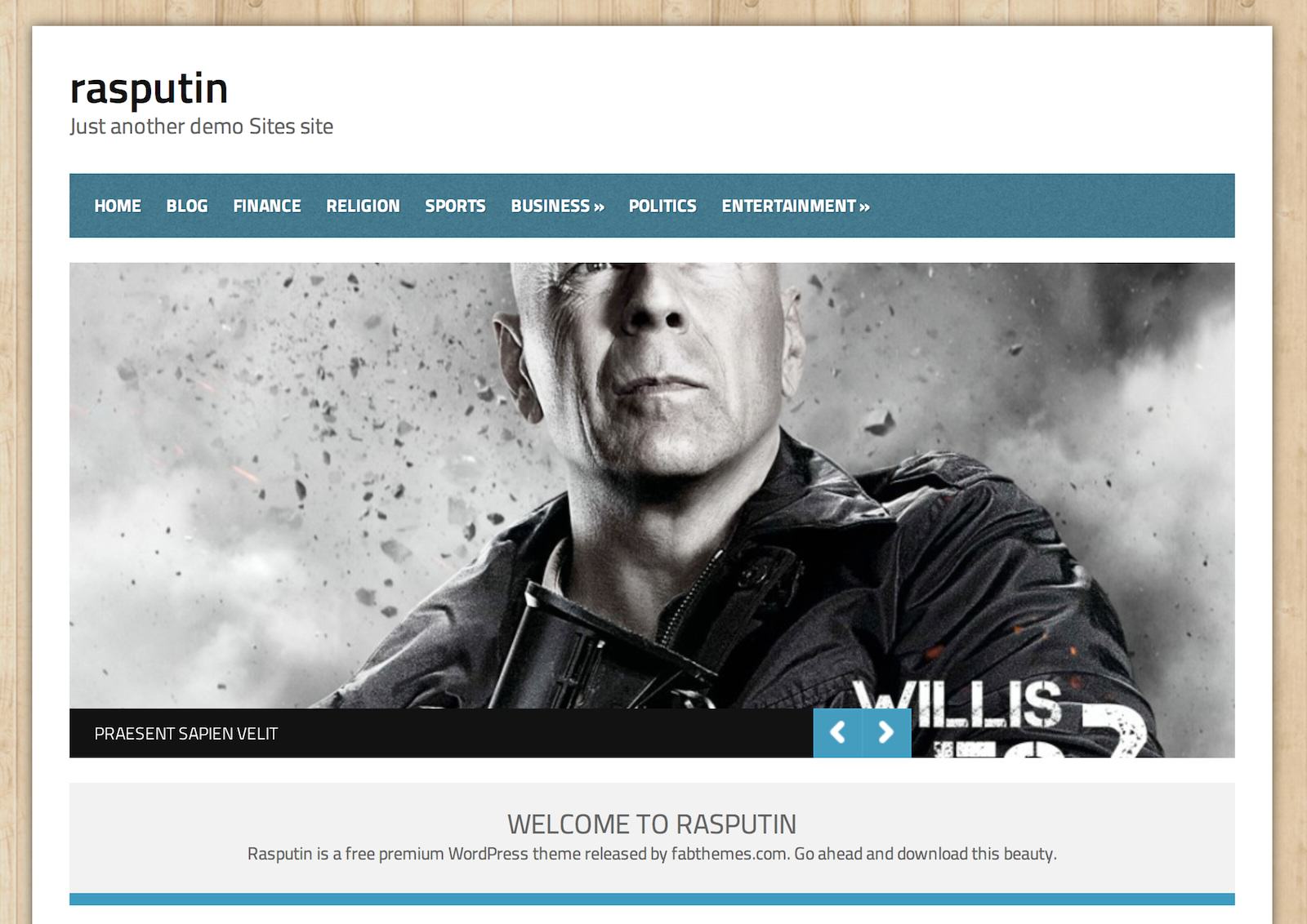 Motyw o ciekawej nazwie i nietypowym (jak na darmowy szablon) układzie statycznej (czyli nie zawierającej wpisów z bloga) strony głównej. Posiada zintegrowany FlexSlider – bardzo popularny skrypt rozwijany przez WooThemes.