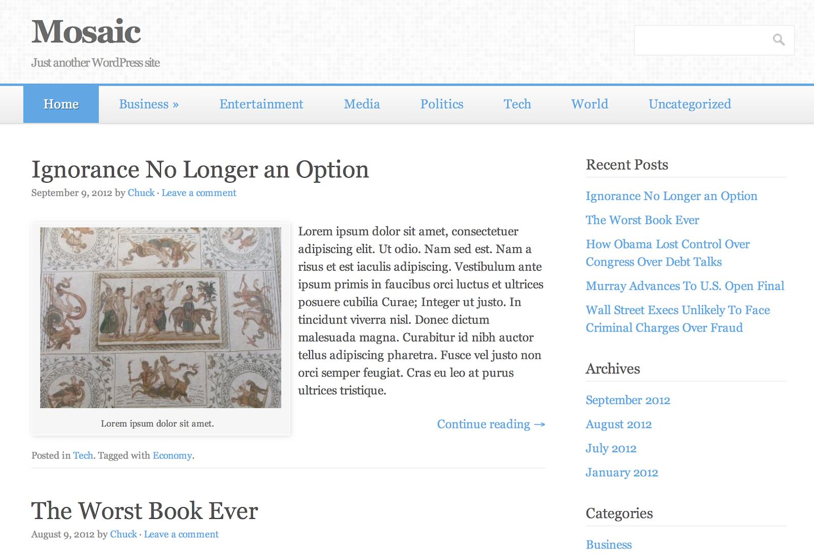 Mosaic to prosty (może nawet nieco zbyt prosty), responsywny szablon blogowy, który można jednak z powodzeniem wykorzystać jako podstawę do budowy czegoś bardziej rozbudowanego.