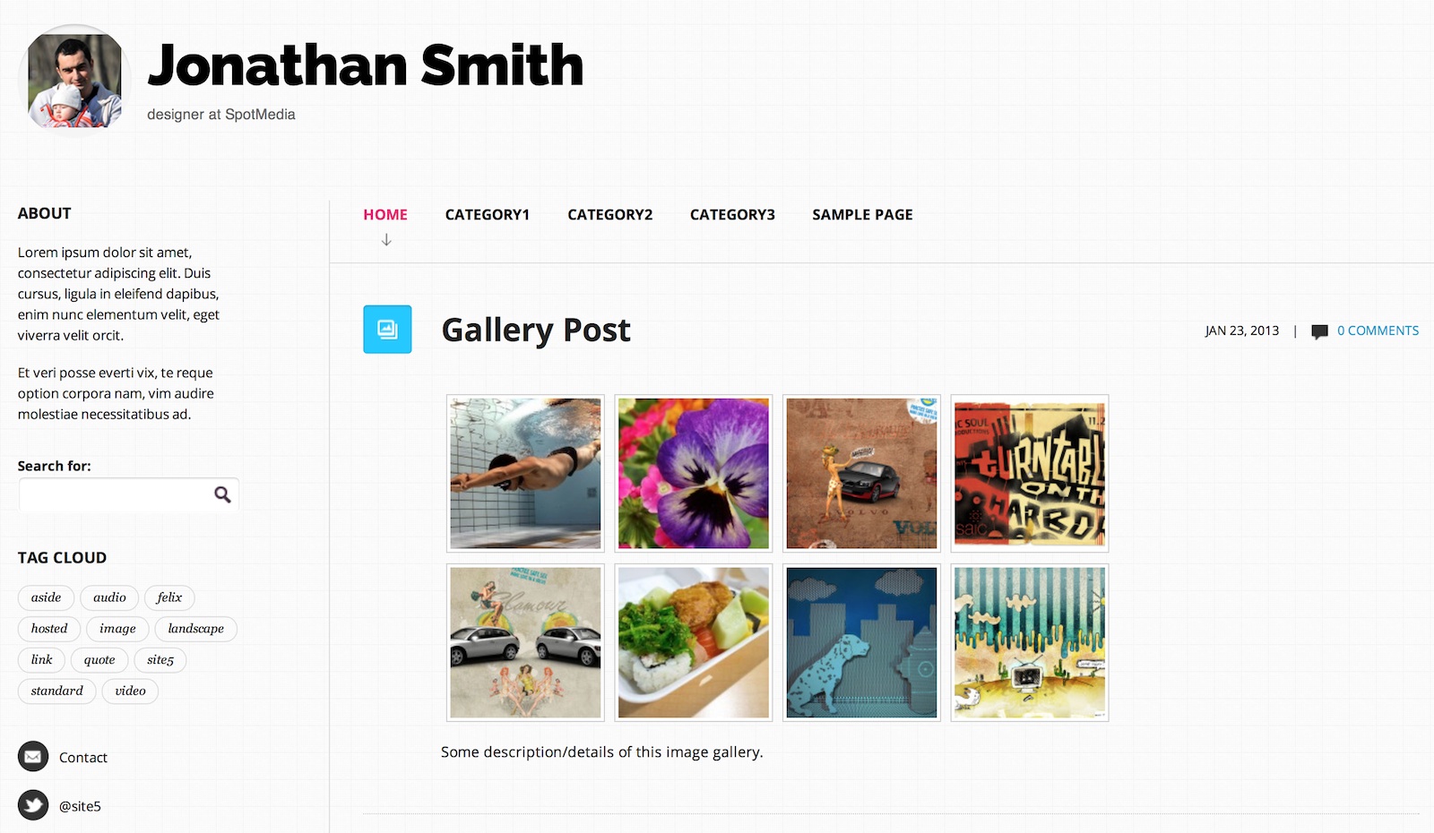 Efektowny motyw, mogący posłużyć do stworzenia zarówno bloga, jak i strony firmowej czy portfolio. Duży slider na stronie głównej wyświetla wybrane wpisy i prace z portfolio.