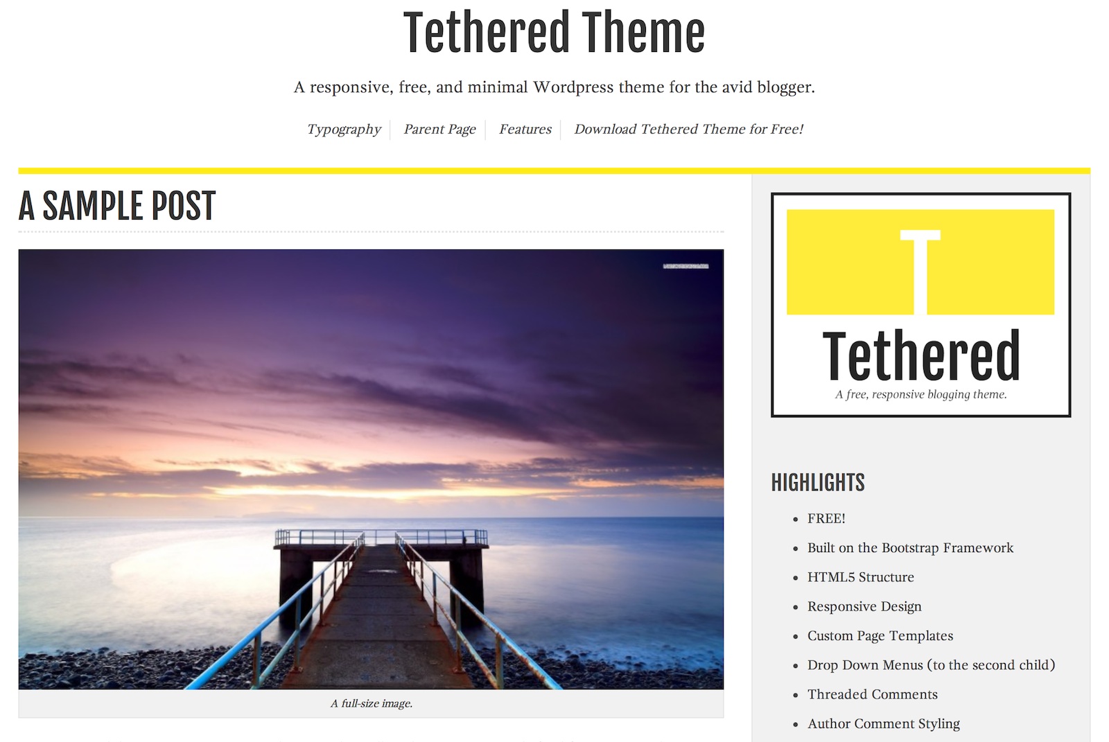 Ładny, ale niezbyt skomplikowany motyw z ciekawą typografią i dwoma menu. Do działania wymaga frameworka Hybrid Core.
