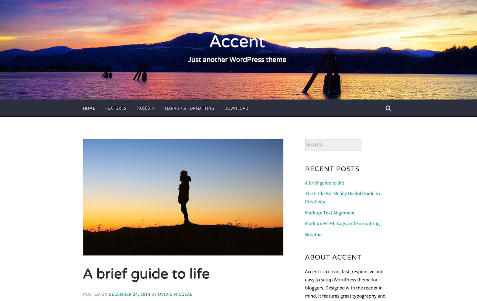 Jeszcze jeden prosty motyw blogowy, dostępny również na platformie WordPress.com.