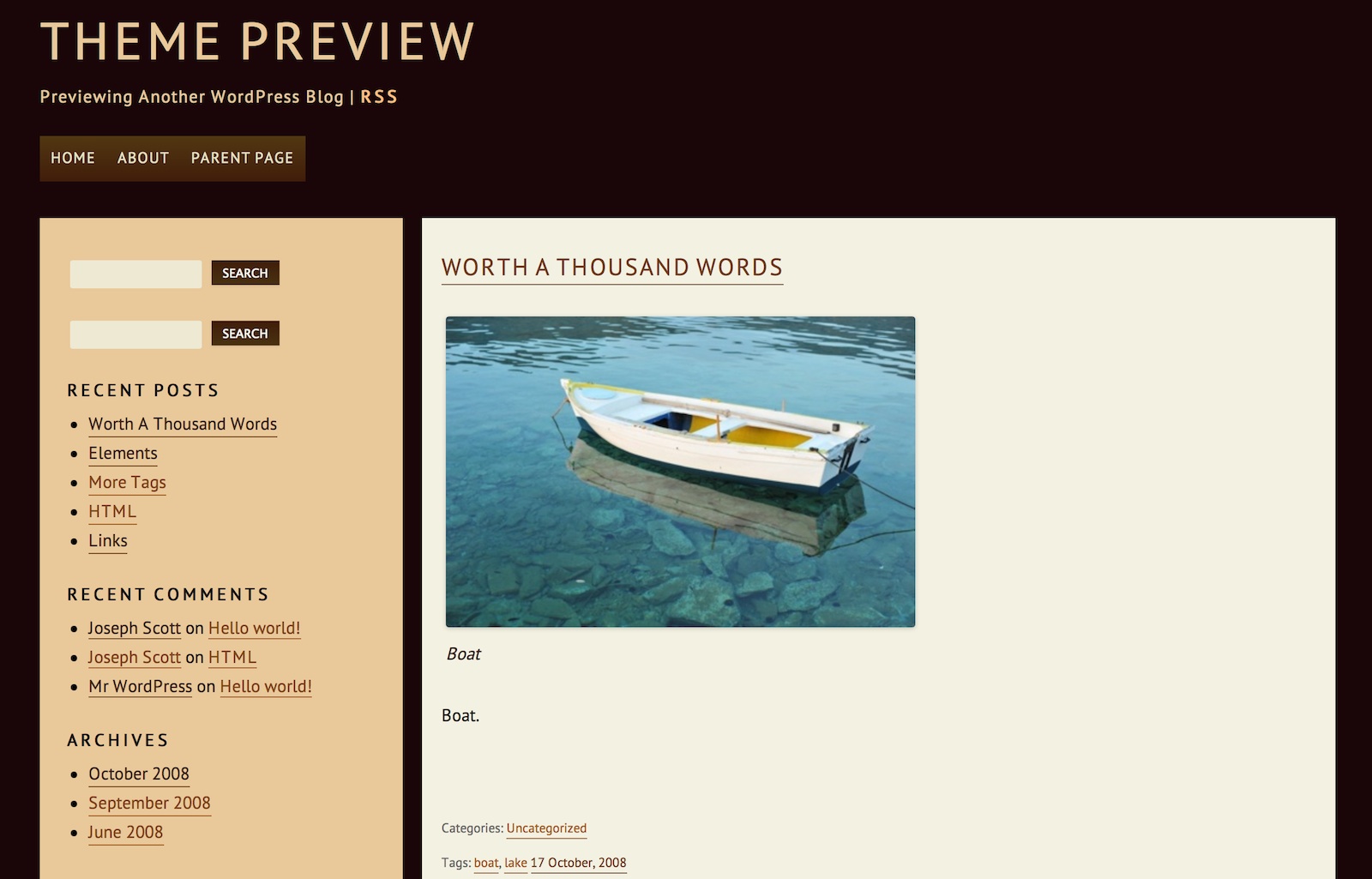 Świetny, minimalistyczny szablon blogowy z ładną typografią i dużymi zdjęciami. Dostępny również na platformie WordPress.com.