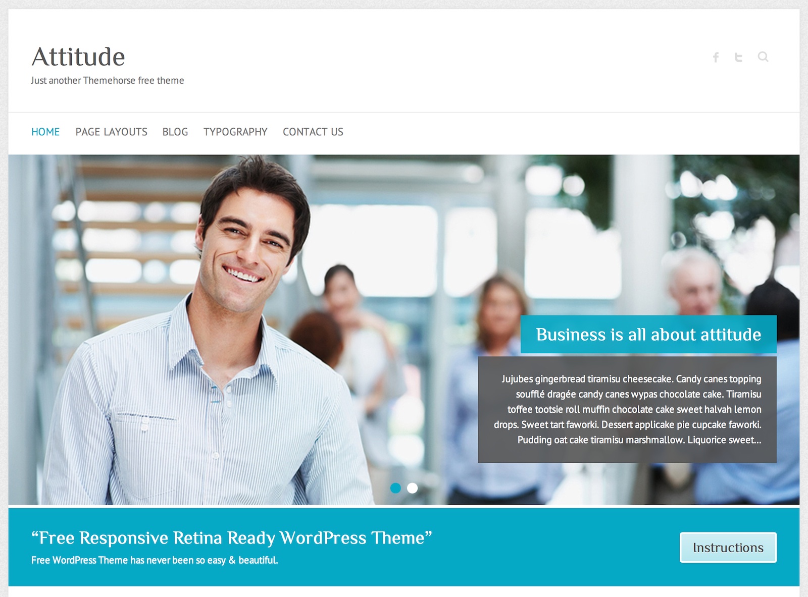 Bardzo ładny, dopracowany motyw z dużym sliderem na stronie głównej. Nadaje się zarówno dla strony firmowej, jak i bloga.