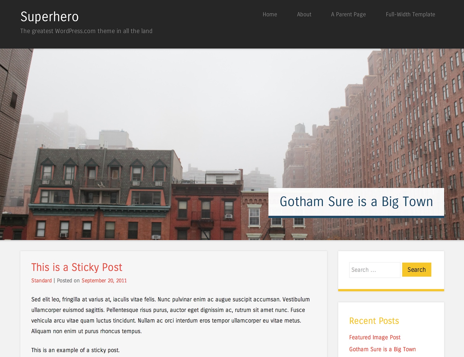 Bardzo ładny szablon blogowy z dużymi zdjęciami w nagłówku i przyklejonym menu. Motyw autorstwa firmy Automattic, odpowiedzialnej za rozwój WordPressa.