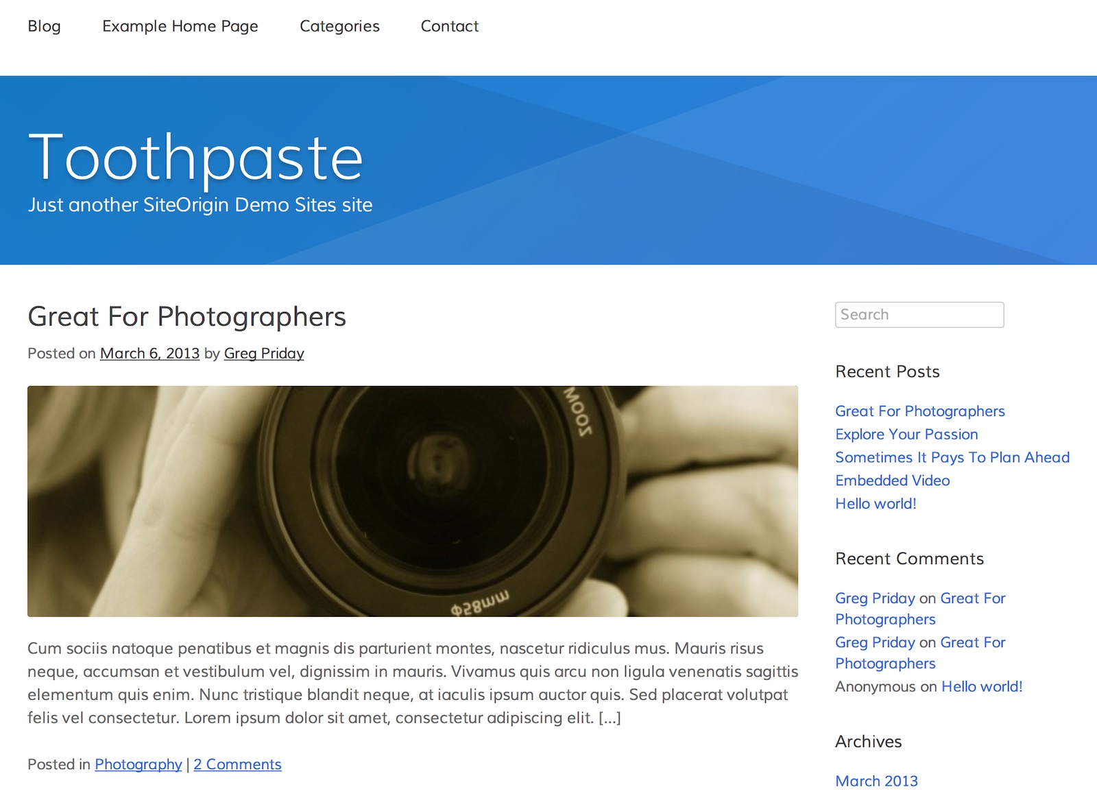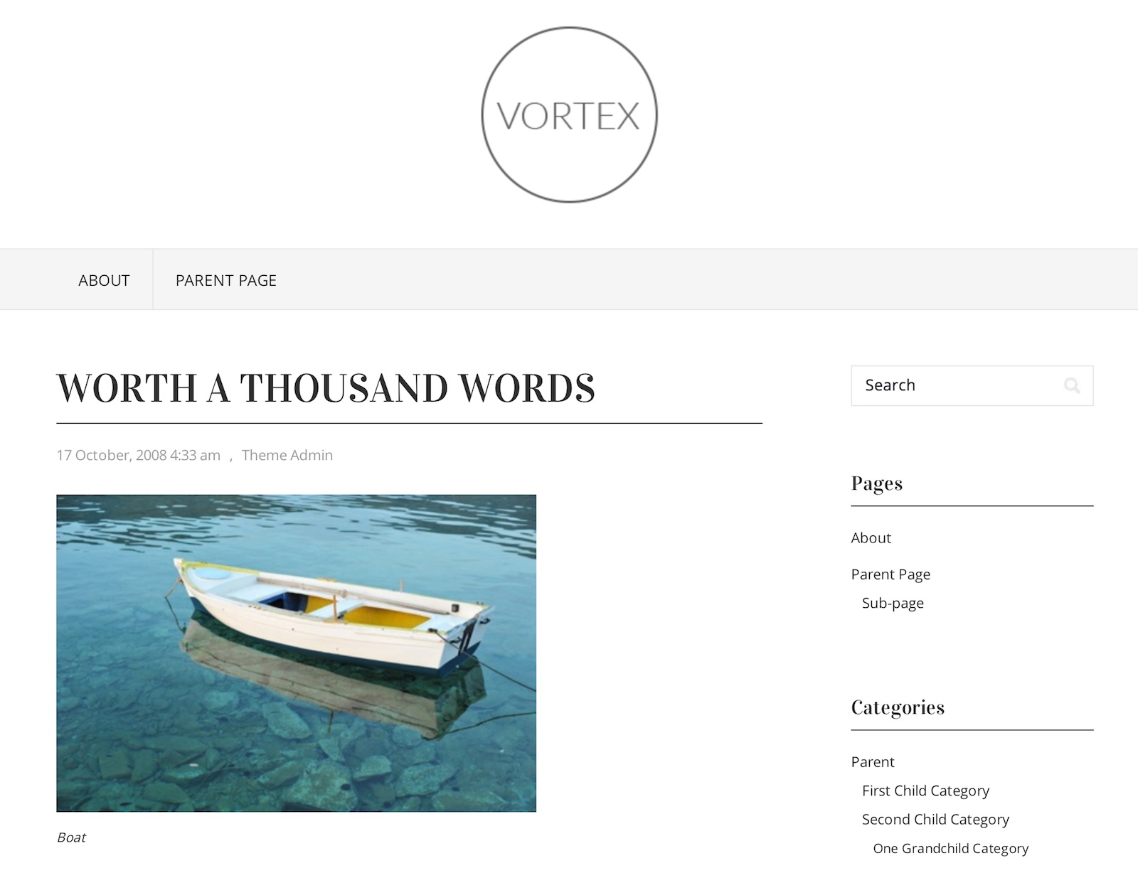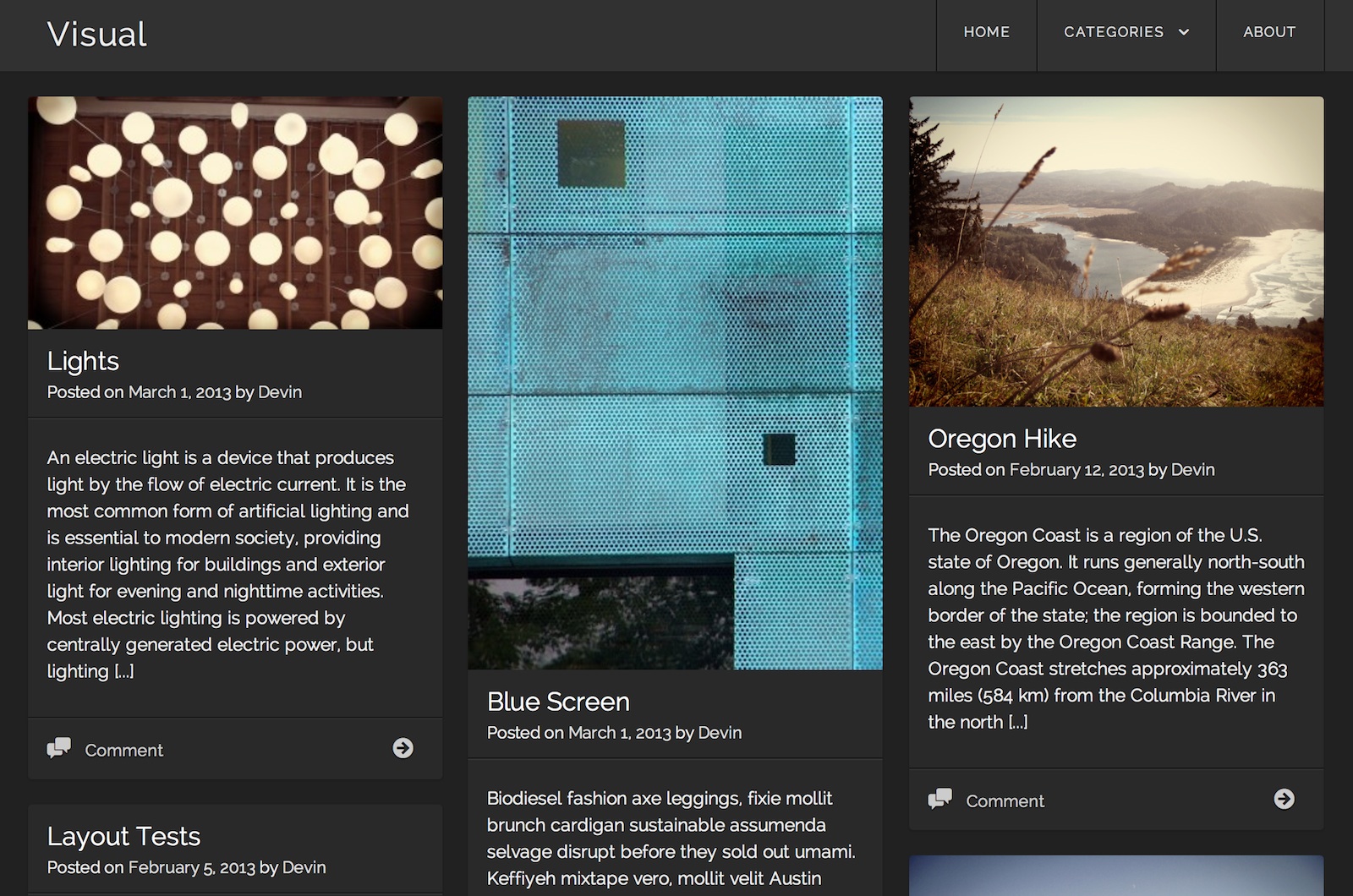 Ładny motyw wyświetlający wpisy w formie dużych obrazków. Świetnie nadaje się do budowy portfolio lub galerii.