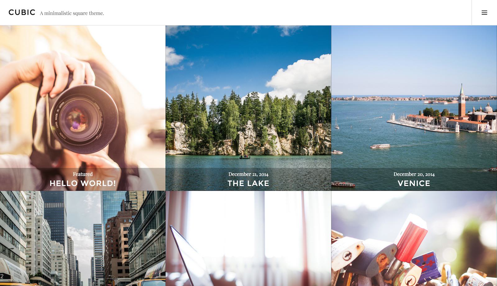 Ciekawy motyw wyświetlający wpisy w formie siatki (grid). Idealny dla portfolio fotograficznego.
