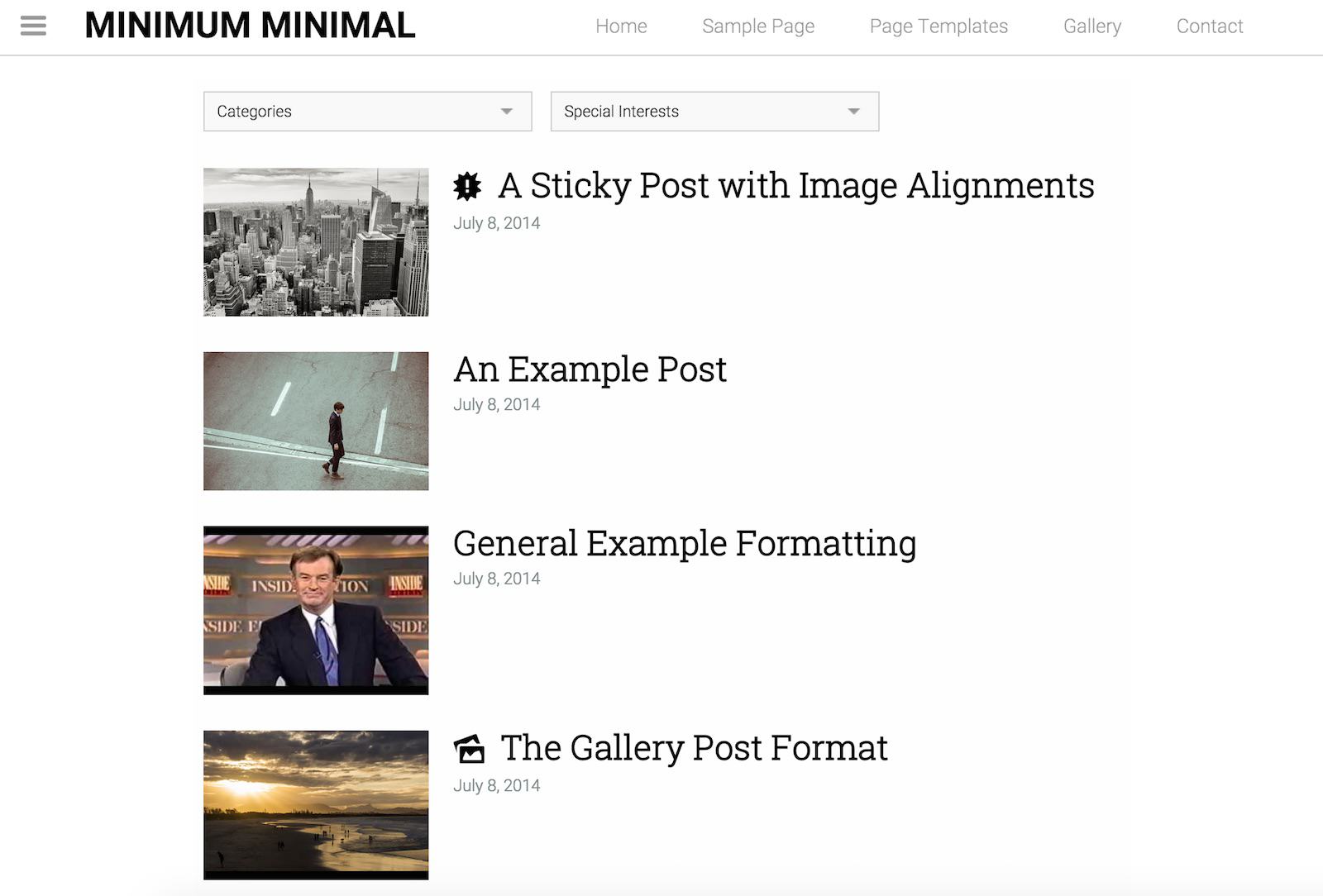 Minimalistyczny motyw z nietypową listą wpisów.