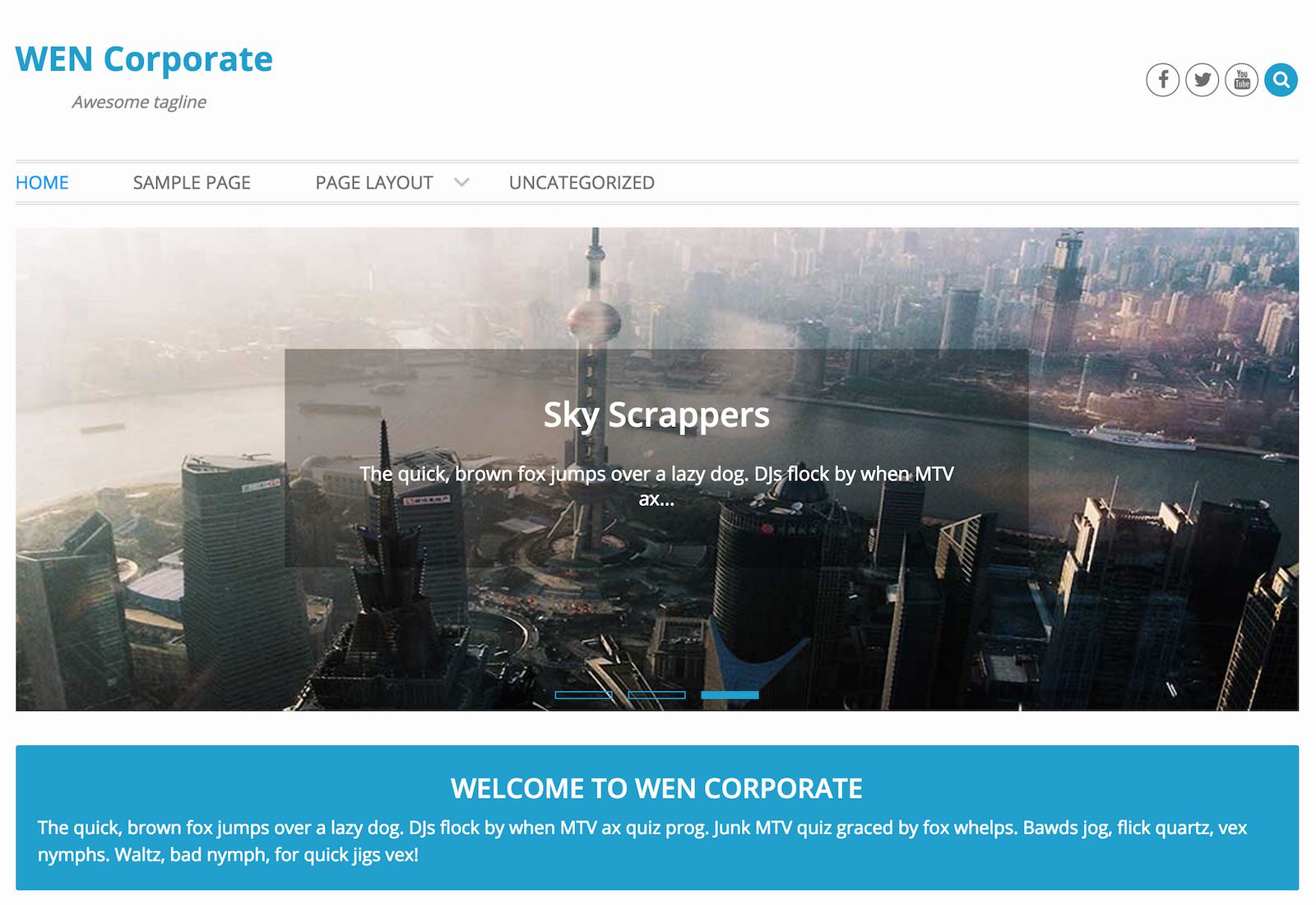 Utrzymany w ciemnej kolorystyce motyw ogólnego przeznaczenia, z dużym sliderem na stronie głównej.